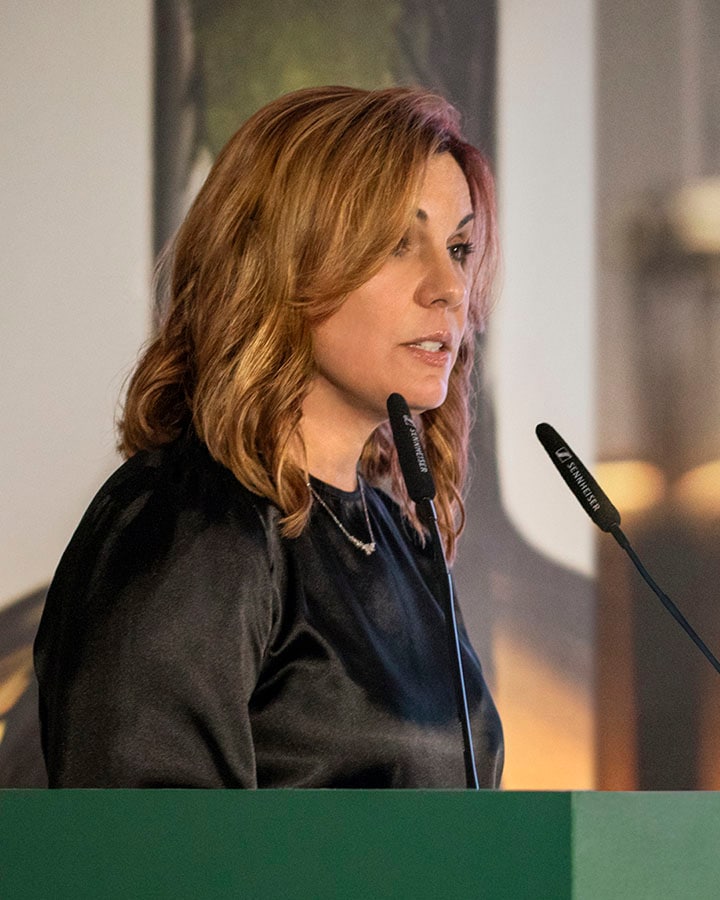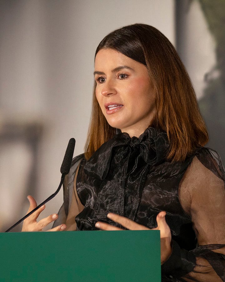 Dr. Rocio Rivera, PhD, SVP de Desarrollo Global de Producto de La Mer, revelando los beneficios de la fórmula integral de Crème de la Mer y The Moisturizing Soft Cream.